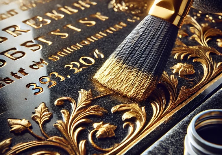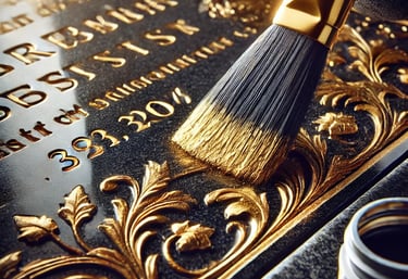 Once the headstone is clean, we begin restoring its appearance. We apply a primer and then paint in multiple coats, letting each layer dry fully to ensure it lasts. We add any gold leaf accents carefully so that the details shine as they originally did. For delicate areas, we use pumice stone to make sure the cleaning is gentle.